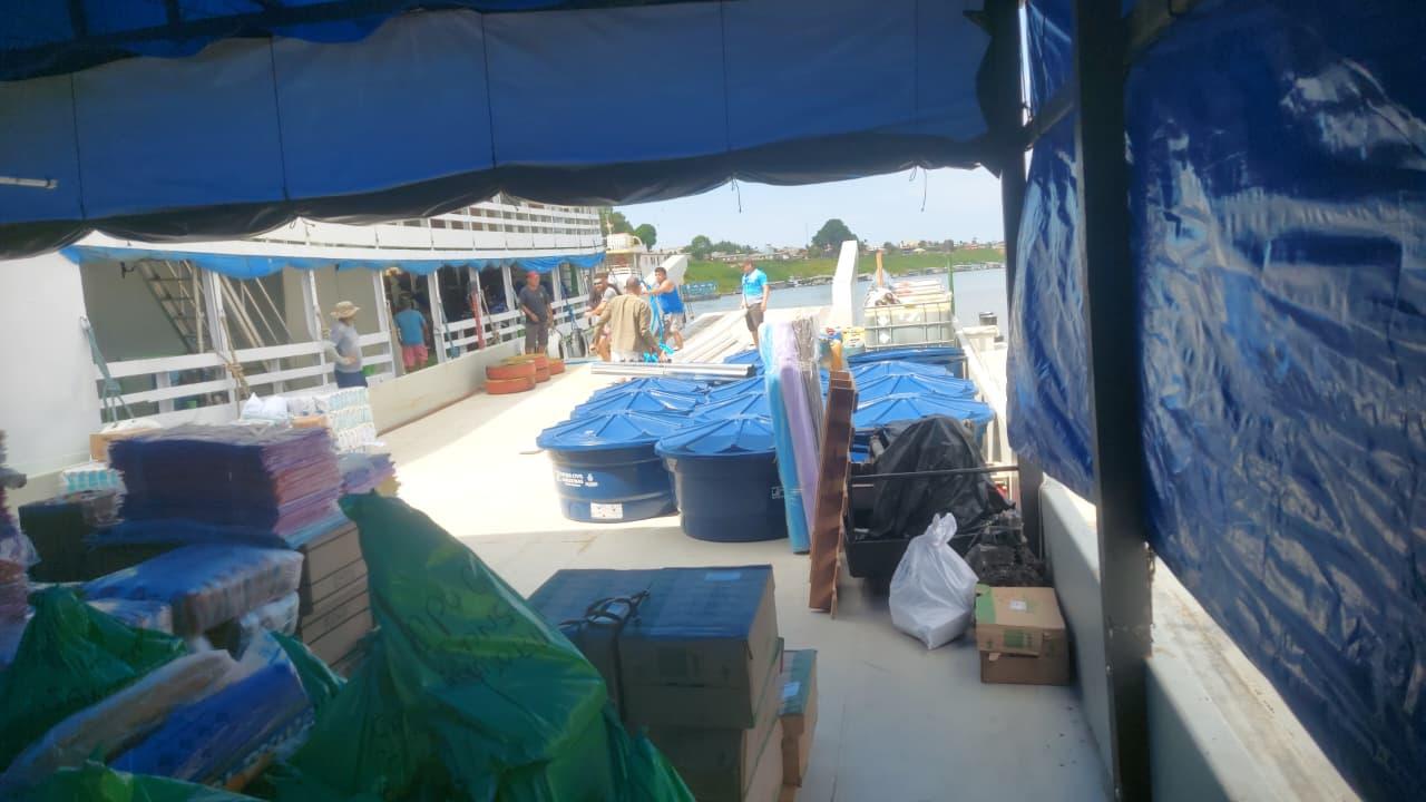 No comboio que partiu da cidade de Lábrea para o interior, nesta segunda-feira (29), foram embarcados merenda e material escolar, cadeiras, fardamentos (para os estudantes), fogões, caixas d’água, utensílios para cozinhas das escolas e cestas de alimentos (básicas).
