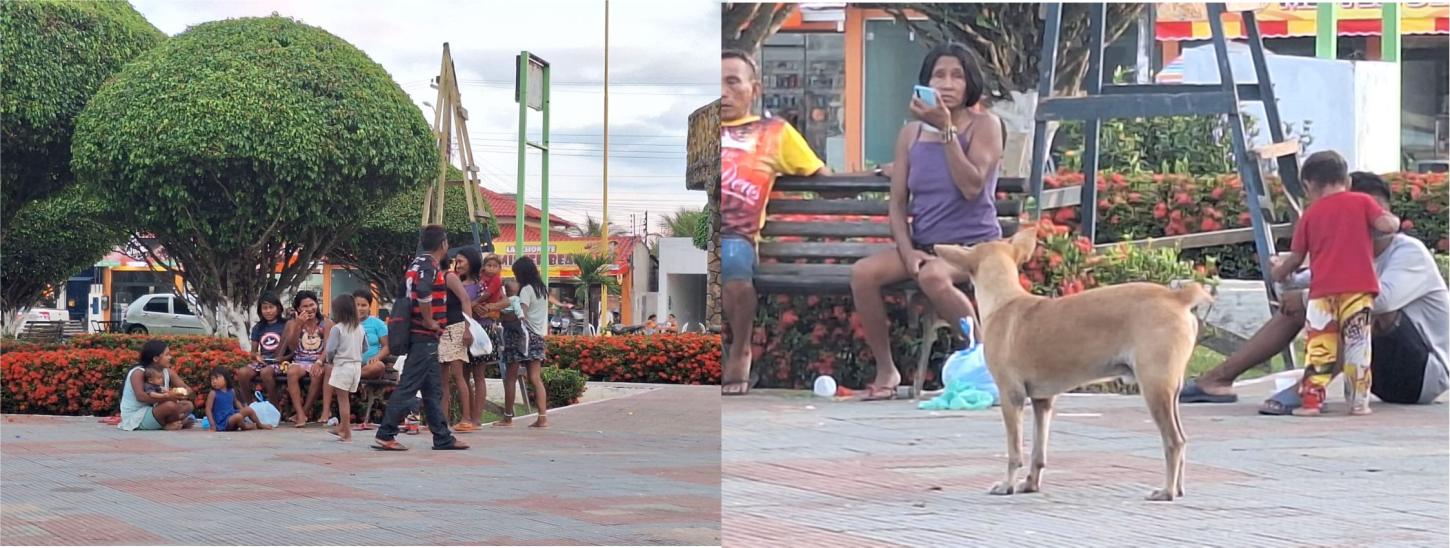 Povo Denni em. praça publica. A maioria não conta com abrigo na cidade.